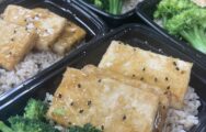 Dill, capers, dijon, garlic cream sauce served over roasted salmon and side brown rice. (600 calories)