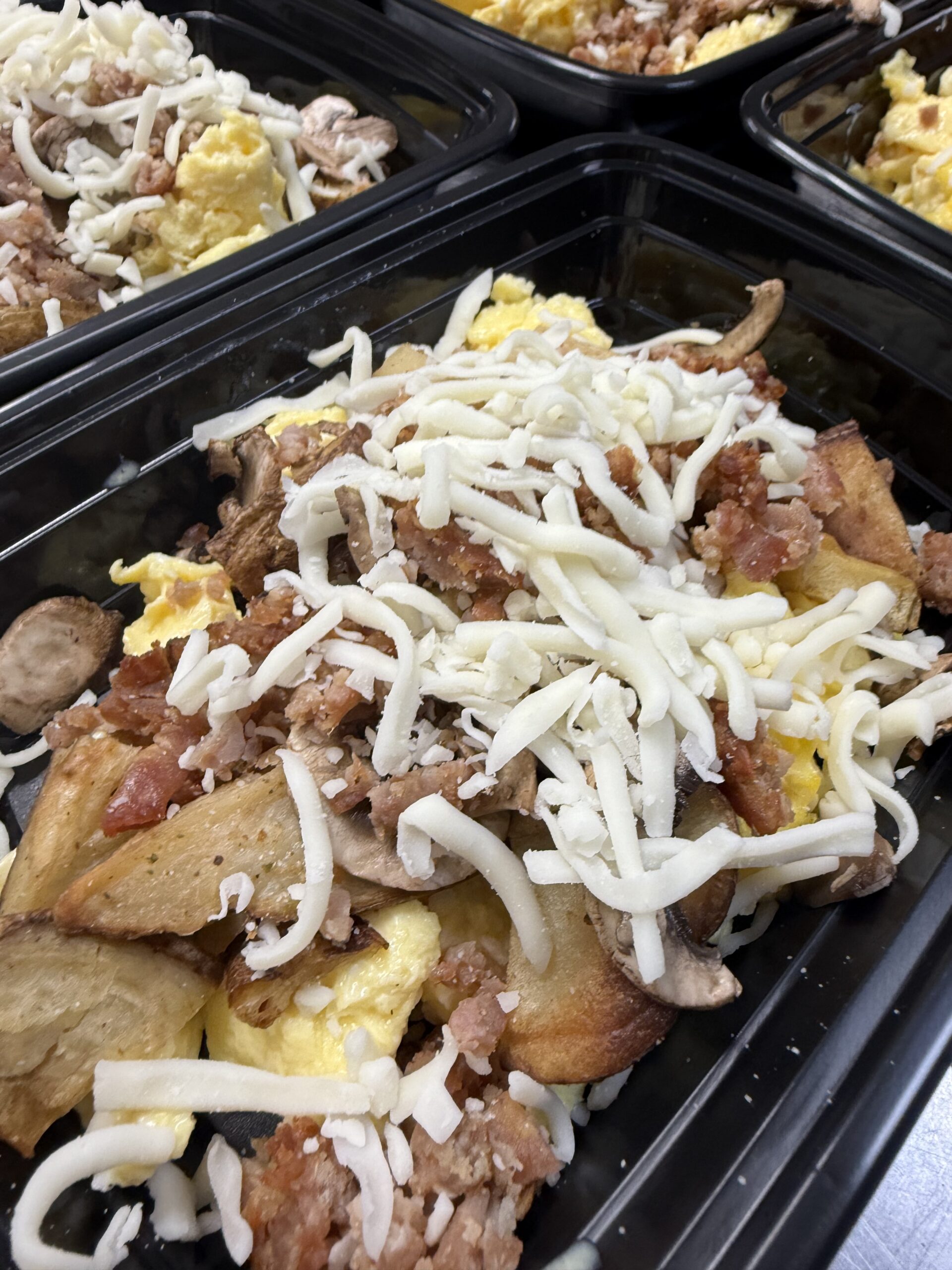 Mild Italian sausage crumbles, roasted mushrooms, 3 whole eggs, roasted potatoes, mozzarella cheese. (350 calories)