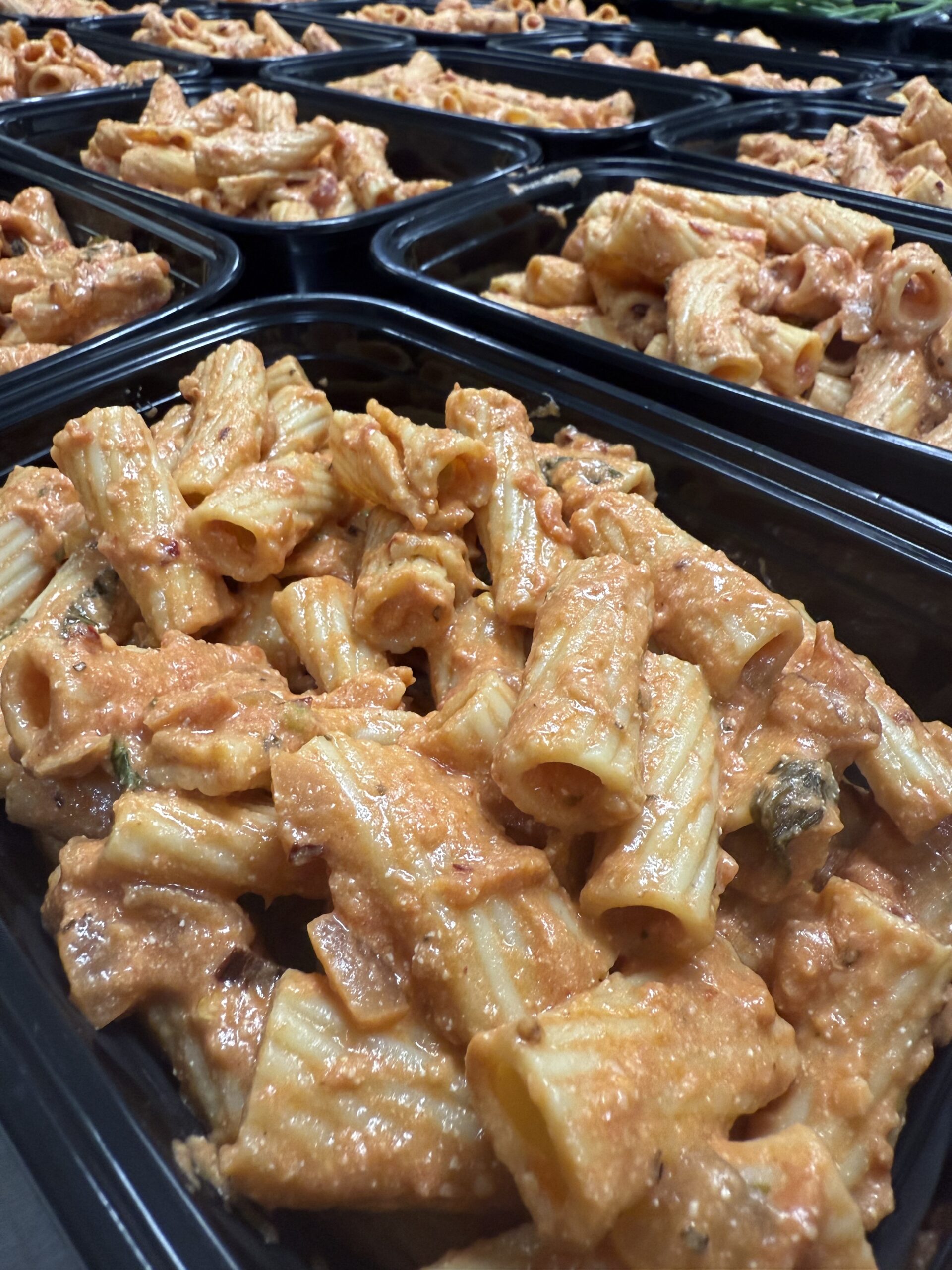 Basil, garlic, tomatoes, onion, tomato paste, crushed red pepper, oilive oil, cottage cheese, parmesan cheese and vodka tossed with Rigatoni pasta. (600 calories)